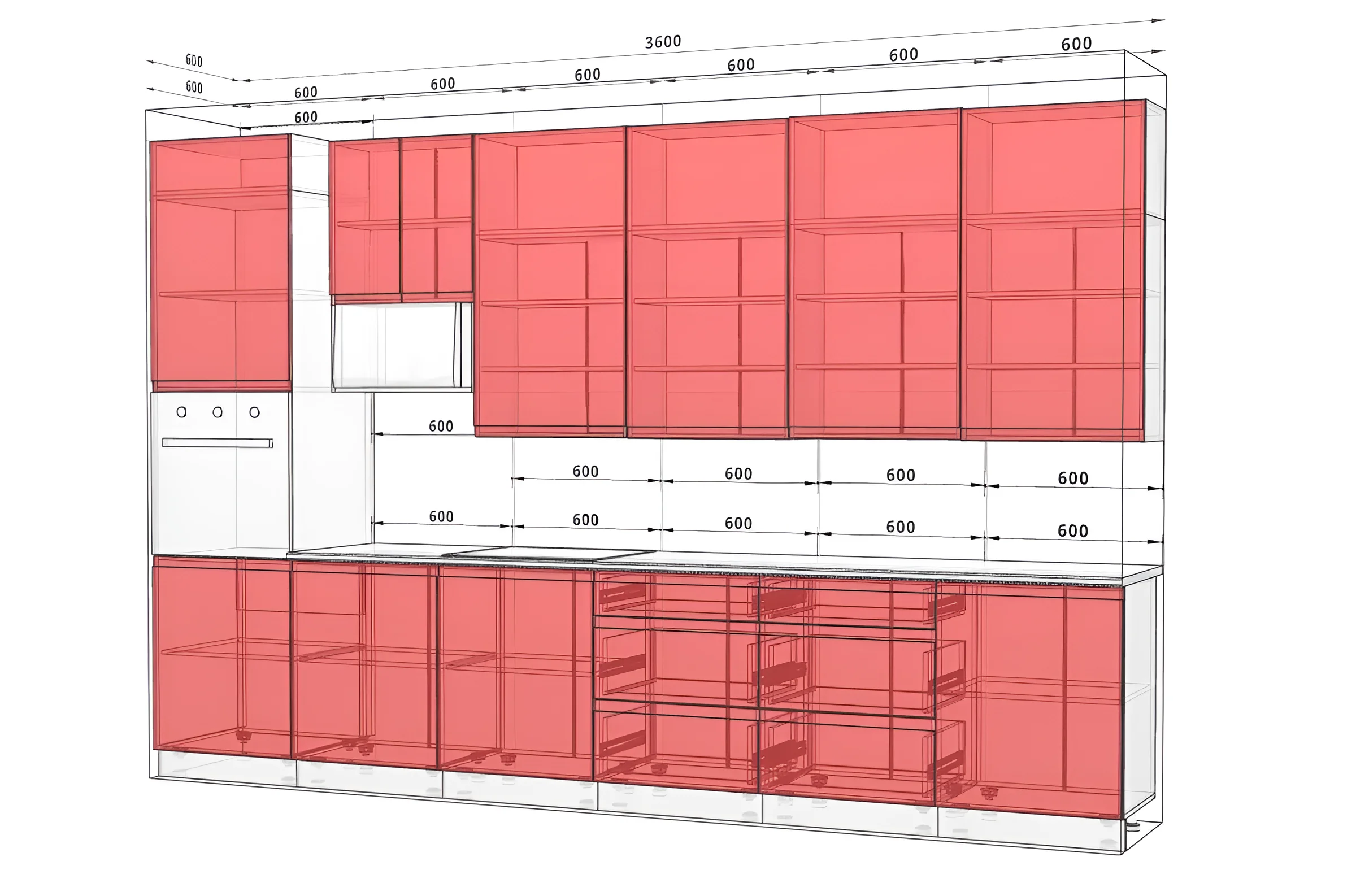 Кухня «Альфа ручка» спроектирована по концепции «под потолок», что означает ее высоту 2,5 метра. Такая конструкция с антресолями позволяет максимально эффективно использовать вертикальное пространство, предоставляя значительно больше мест для хранения кухонной утвари, посуды и запасов, чем стандартные модели. Больше не нужно переживать о пыли на верхних шкафчиках – кухня органично вписывается в интерьер, создавая единую, гармоничную линию с потолком. Длина кухни составляет внушительные 3,6 метра, что делает ее идеальным выбором для просторных помещений, где можно реализовать самые смелые кулинарные идеи и комфортно разместить всю необходимую бытовую технику.