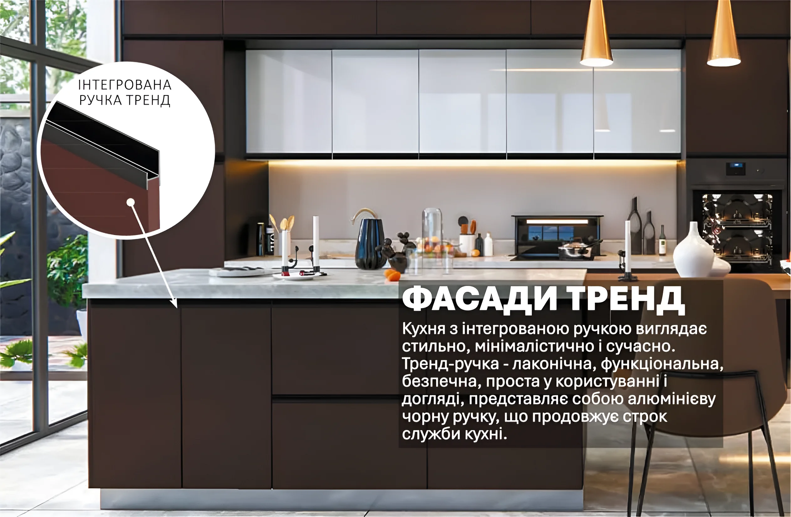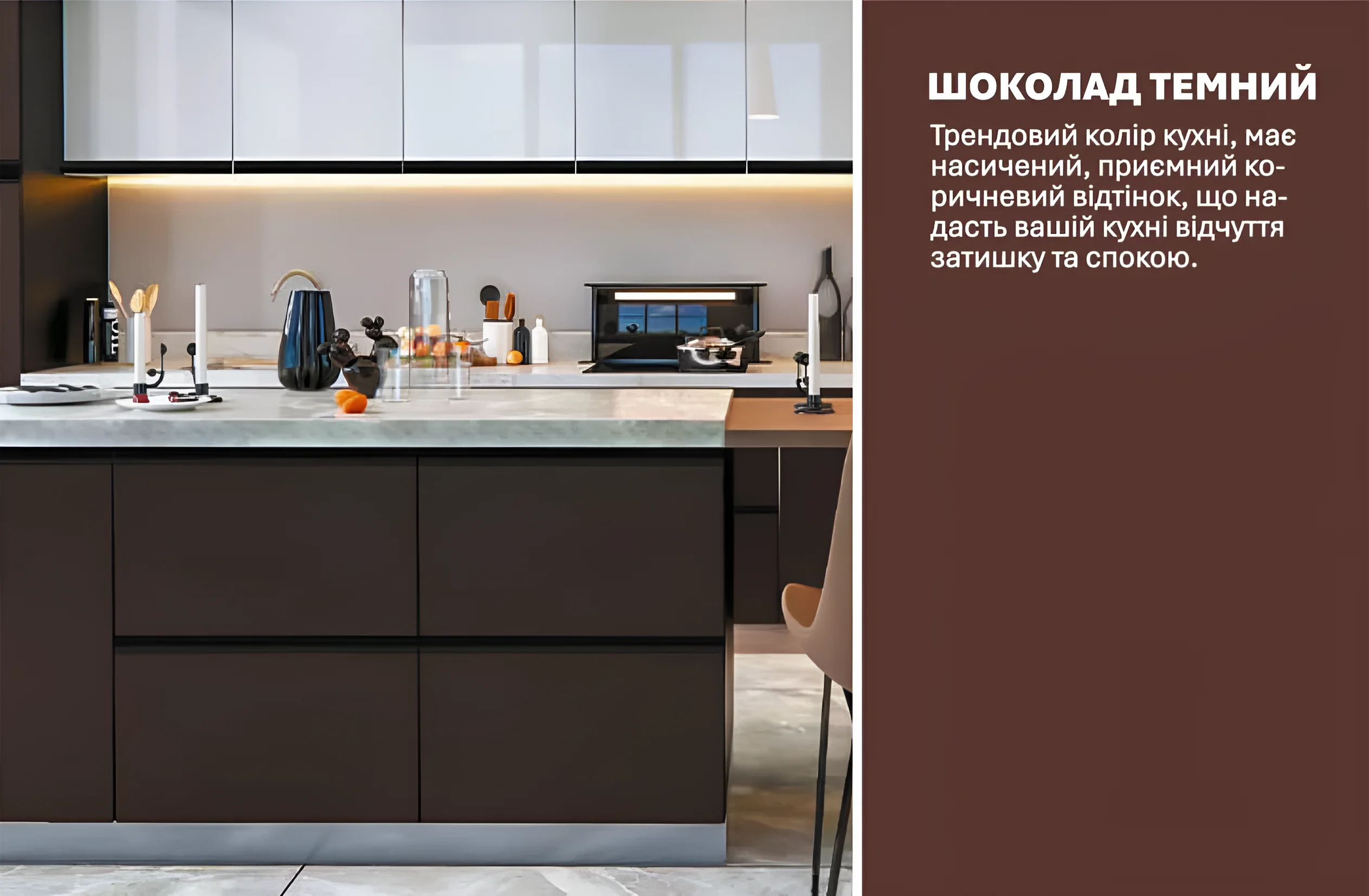 Дизайн кухни «Тренд» – это гармоничное сочетание классической элегантности и современных тенденций. Цветовая палитра из чистого Белого и глубокого Шоколада темного создает контрастный, но при этом сбалансированный ансамбль, который способен оживить любое пространство. Белые фасады добавляют света и визуально расширяют помещение, тогда как темный шоколадный оттенок придает глубину, солидность и уют. Это не просто мебель, это продуманная система для комфортной жизни, где каждая деталь служит своей цели.
