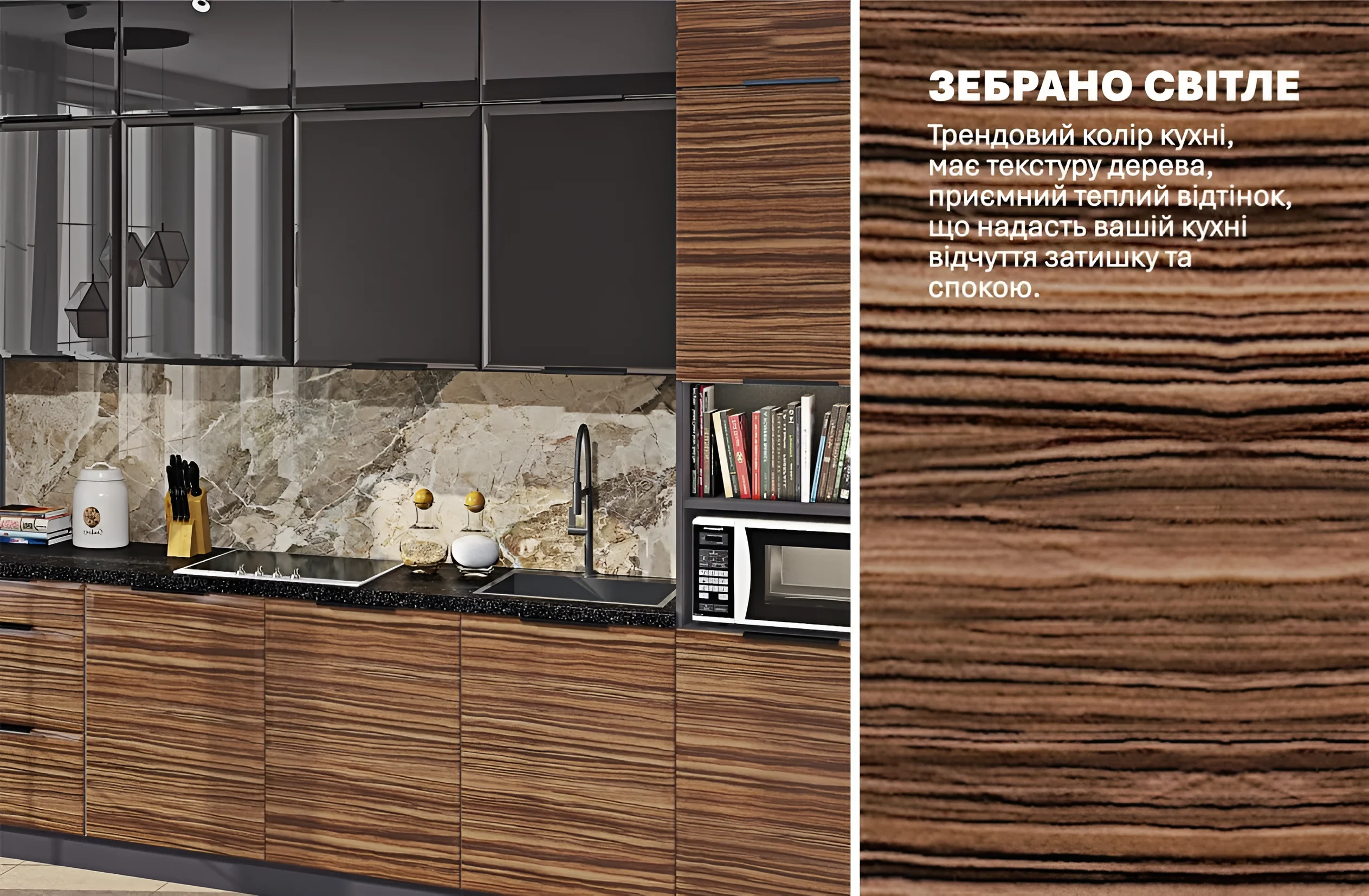 | Цвет фасада кухни | Асфальт, Зебрано светлое |