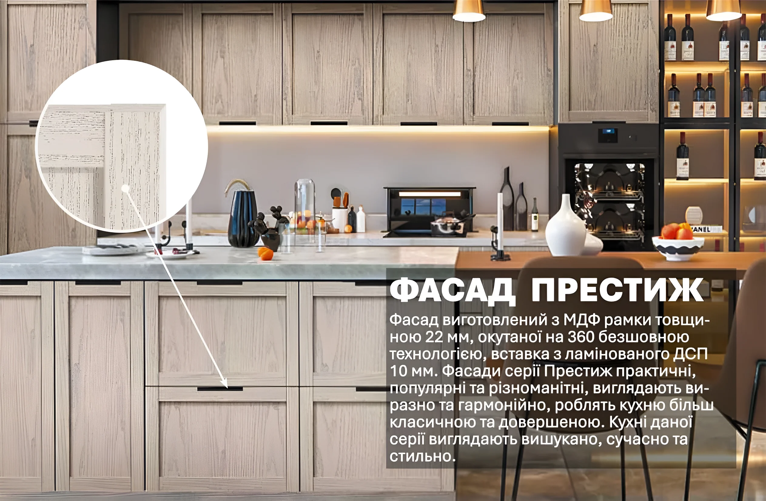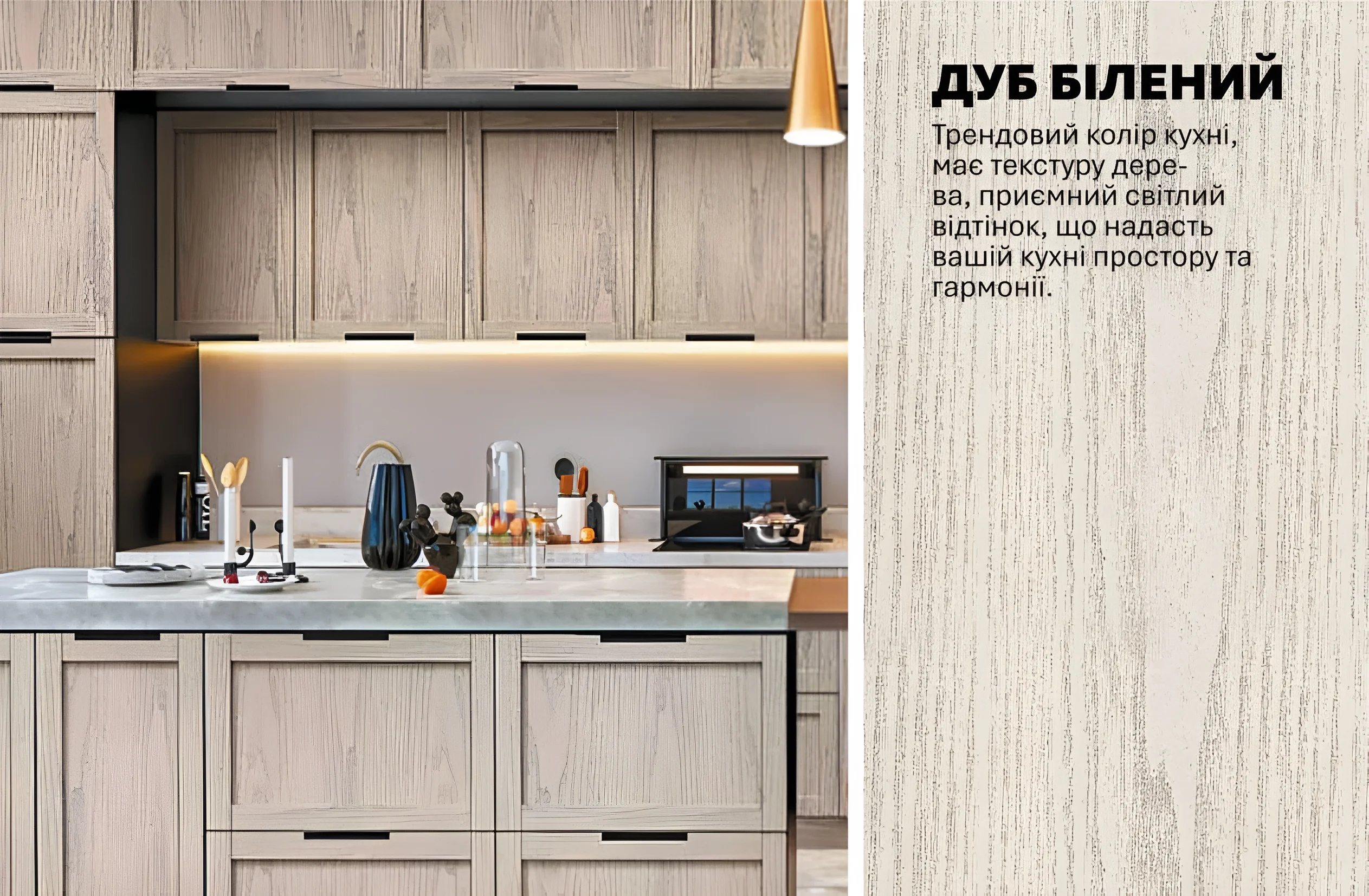 Купить Кухня «Престиж» 4,4м с кухонным островом Дуб беленый в Украине вы можете на сайте MebelTops.com.