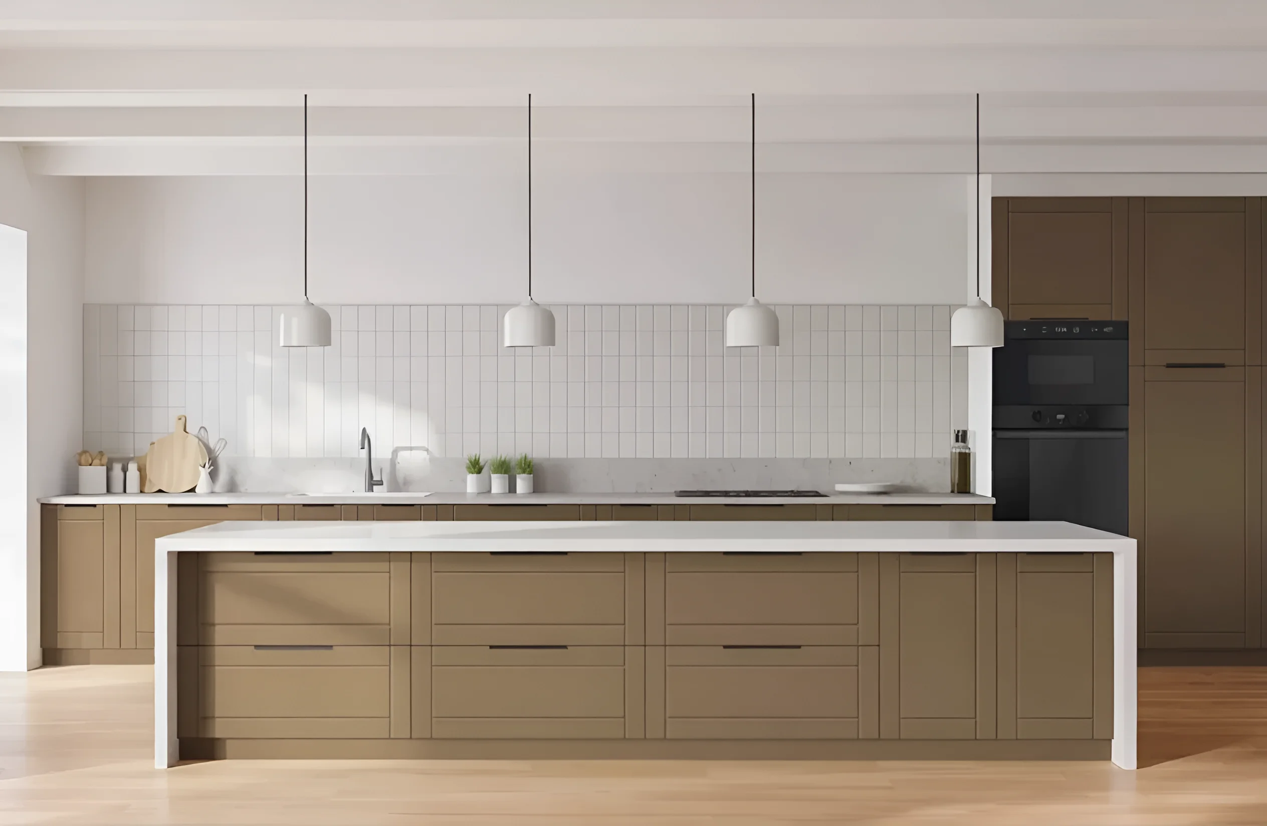 Одной из ключевых особенностей кухни «Рамка» является ее впечатляющая высота – 2,5 метра. Это решение «до потолка», дополненное антресолями, позволяет максимально использовать вертикальное пространство. Вы забудете о проблемах с хранением, ведь каждый сантиметр будет работать на вас. Верхние шкафы предлагаются в двух вариантах высоты: 1080 мм и 1280 мм, что позволяет подобрать оптимальное решение исходя из высоты потолков и ваших личных предпочтений. Такое разнообразие высот делает кухню не только практичной, но и гибкой в планировании.