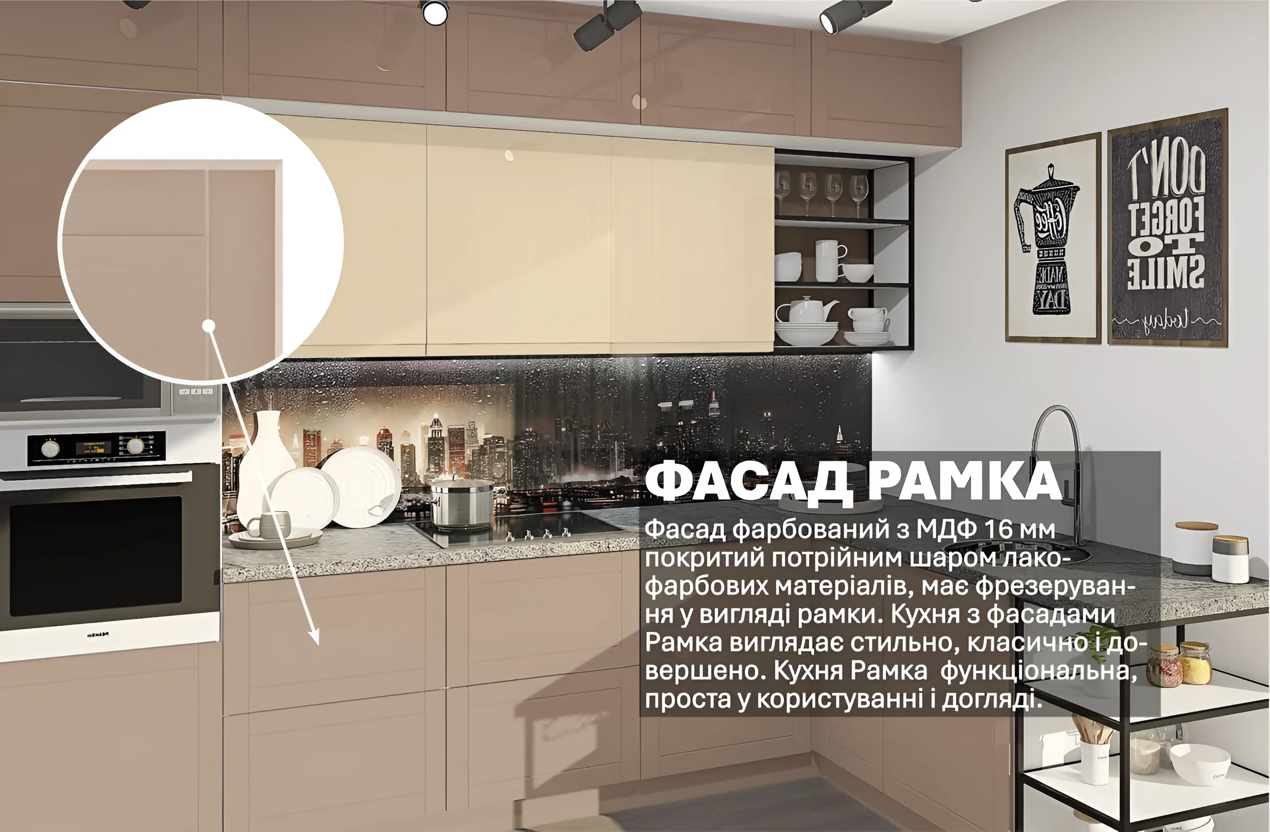 Купить Кухня «Рамка» 3х2м угловая крашеный МДФ Капучино, Крем в Украине вы можете на сайте MebelTops.com.