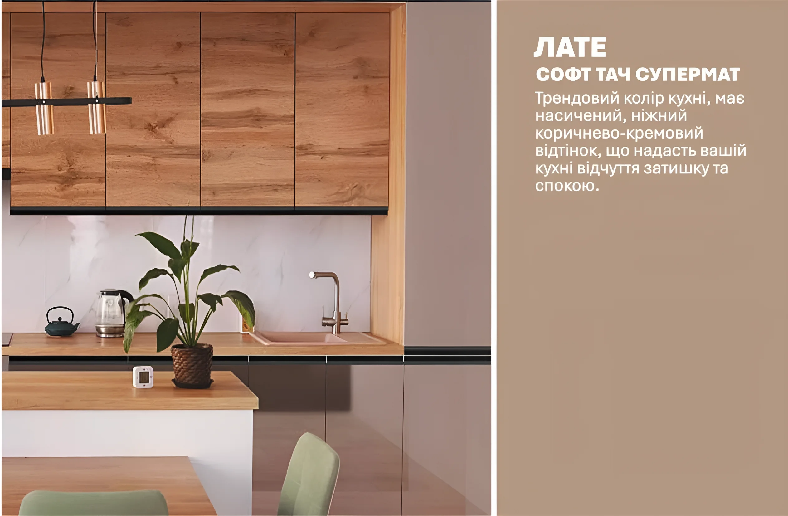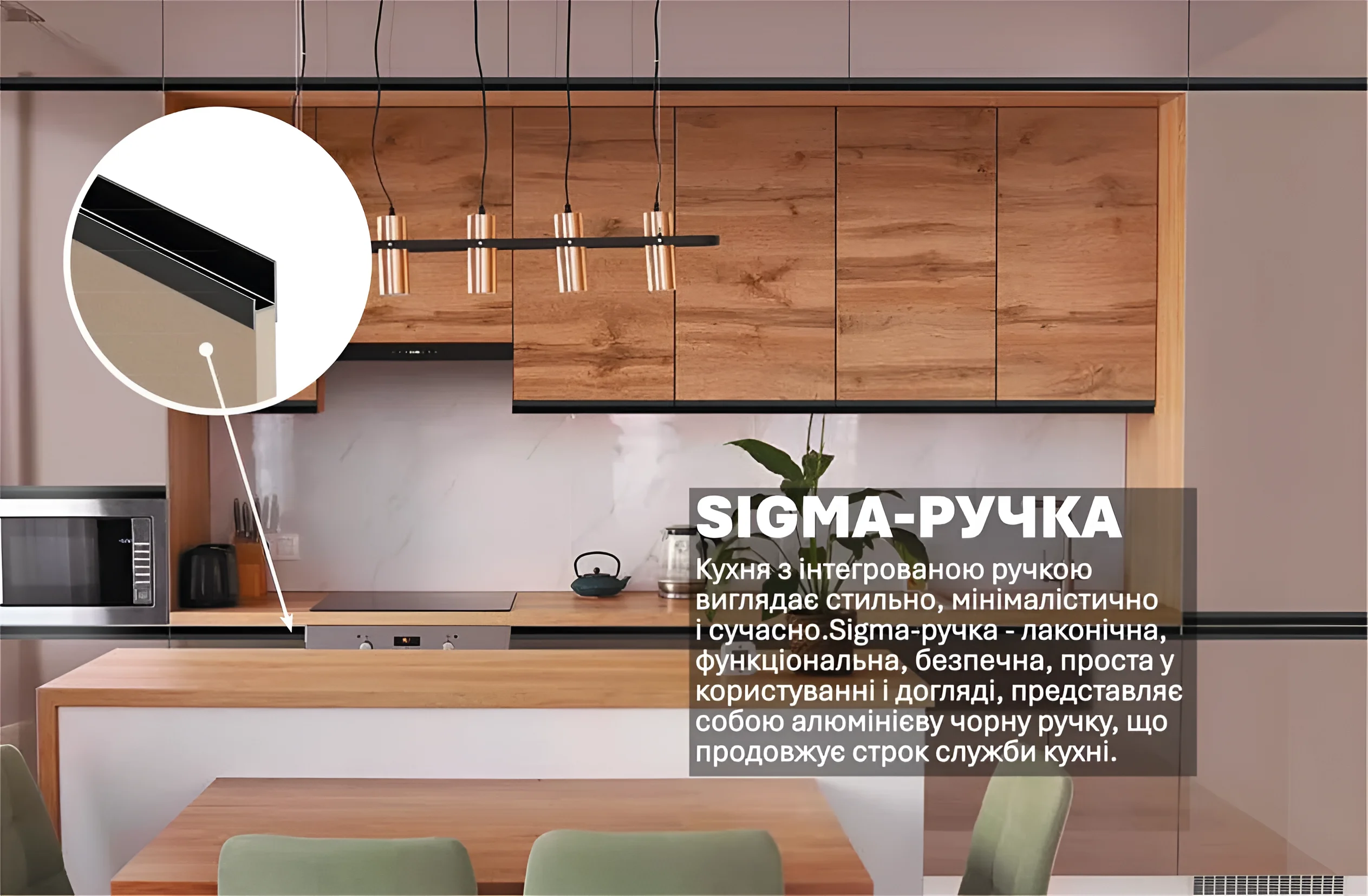 Фасады кухни «Sigma ручка» выполнены в благородных цветах Дуб золотой и Лате, которые создают неповторимую атмосферу тепла и уюта. Оттенок Дуб золотой привносит в интерьер природную красоту и глубину, имитируя текстуру натурального дерева с его уникальным рисунком. Цвет Лате, в свою очередь, добавляет легкости и современности, создавая стильный контраст и визуально расширяя пространство. Такое гармоничное сочетание цветов позволяет легко интегрировать кухню в любой интерьер, от классического до ультрасовременного. Фасады серии «Sigma ручка» отличаются не только эстетикой, но и тактильными ощущениями. Часть фасадов выполнена из МДФ с покрытием пленкой ПВХ софт тач, что придает поверхности приятную бархатистость и матовость, минимизируя видимость отпечатков пальцев. Другая часть использует текстурированную пленку ПВХ, добавляющую рельефности и оригинальности. Такое решение подчеркивает индивидуальность дизайна и придает кухне особый шарм, делая ее по-настоящему уникальной.