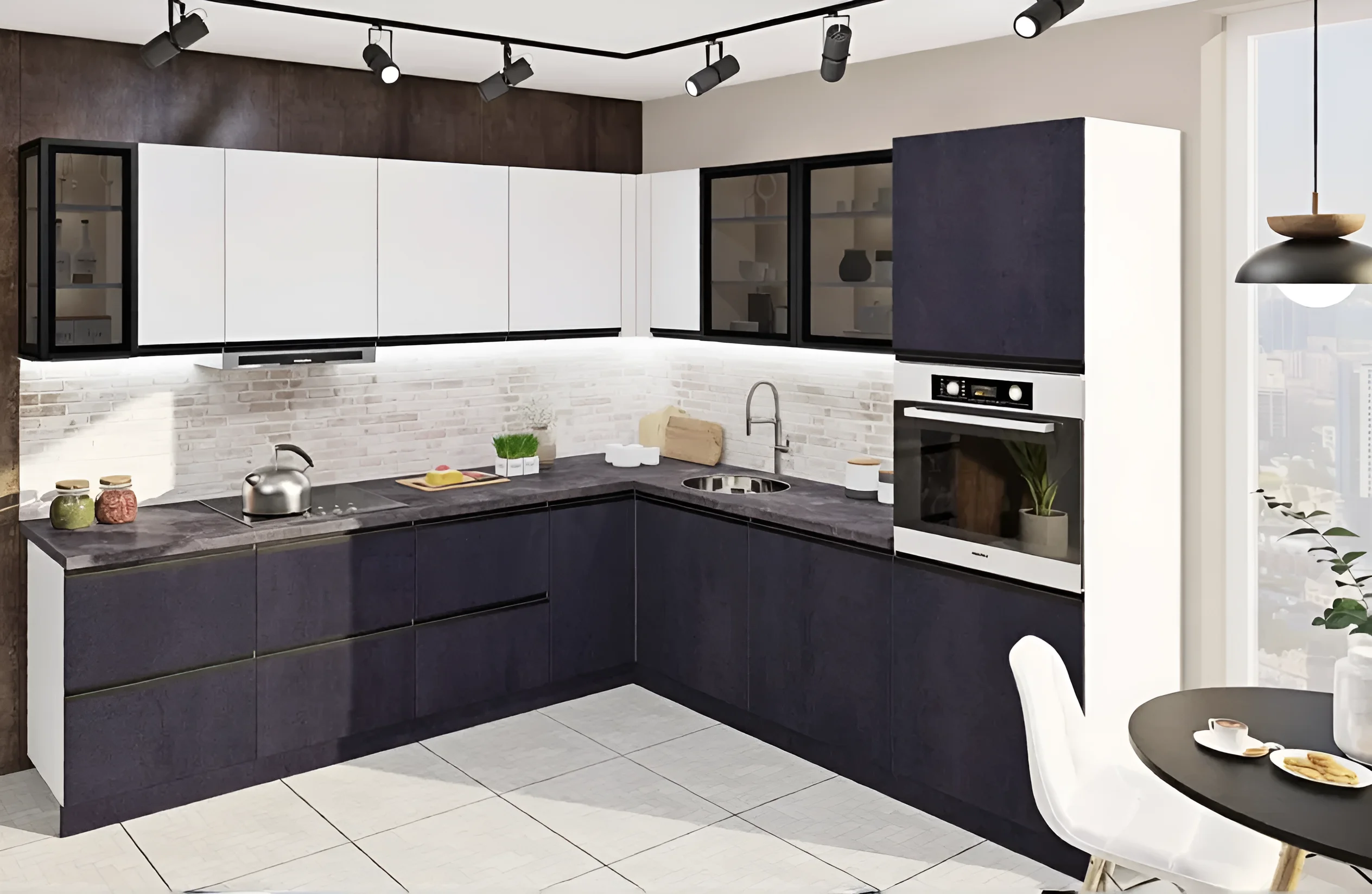 Представляем вашему вниманию угловую кухню «Тренд» – идеальное решение для современного интерьера, где функциональность и стиль гармонично переплетаются. Эта модель, спроектированная с учетом актуальных дизайнерских тенденций, станет центральным элементом вашего дома, предлагая просторное и комфортное пространство для кулинарных экспериментов и уютных семейных вечеров. Сочетание классического белого цвета с глубоким оттенком «Угольный камень» придает кухне особую элегантность и универсальность, позволяя ей легко вписаться как в минималистичный, так и в более выразительный интерьер.