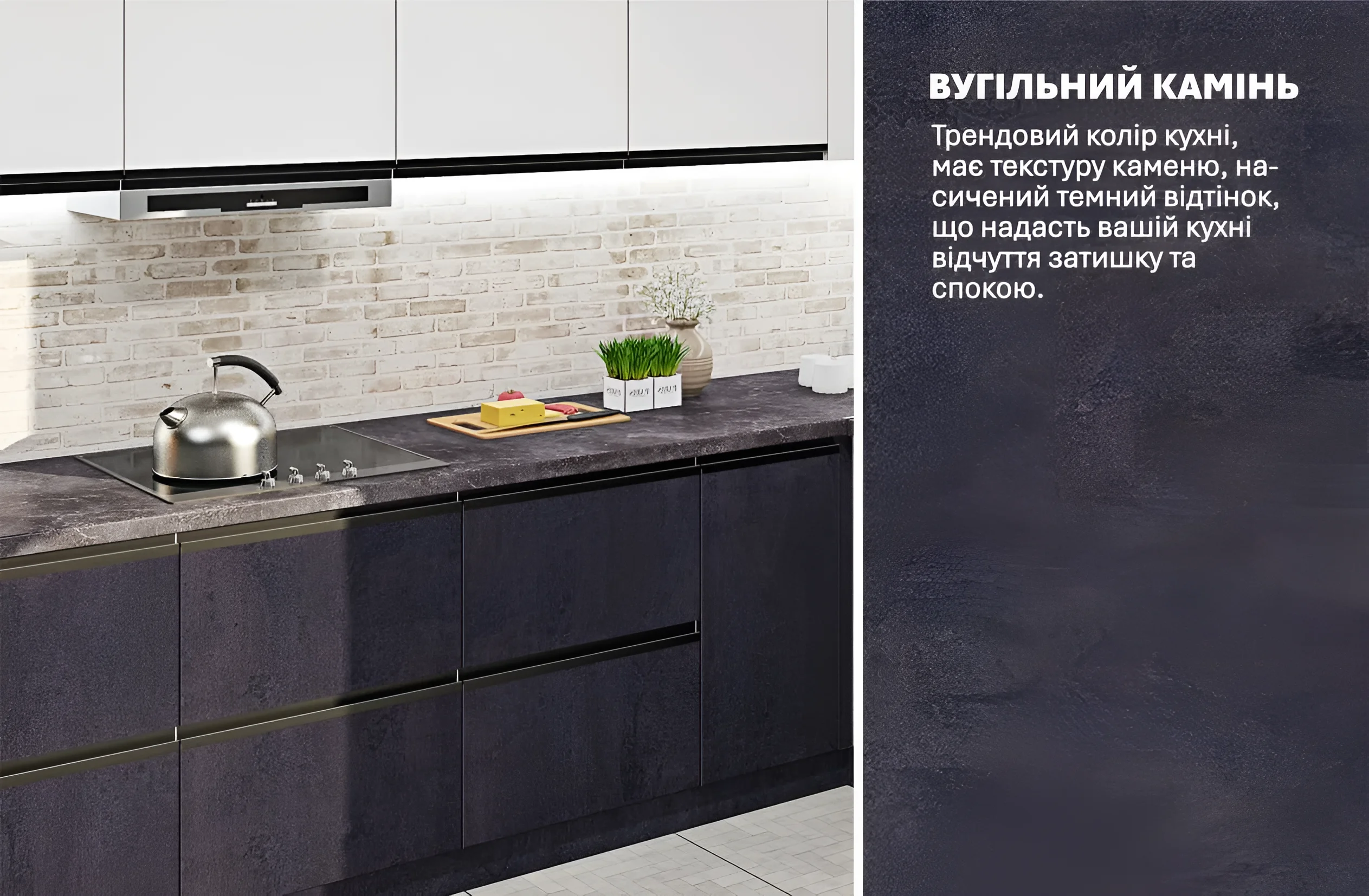 Кухня «Тренд» 2,8 х 2,4 метра угловая Белый, Угольный камень – это больше, чем просто мебель. Это инвестиция в комфорт, стиль и функциональность вашего дома. Современный дизайн, высококачественные материалы, продуманные размеры и возможность индивидуального заказа делают эту кухню идеальным выбором для тех, кто ценит практичность и эстетику. Она создана для того, чтобы вдохновлять вас на кулинарные шедевры и дарить уют вашей семье на долгие годы. Откройте для себя совершенство в каждой детали с кухней «Тренд».