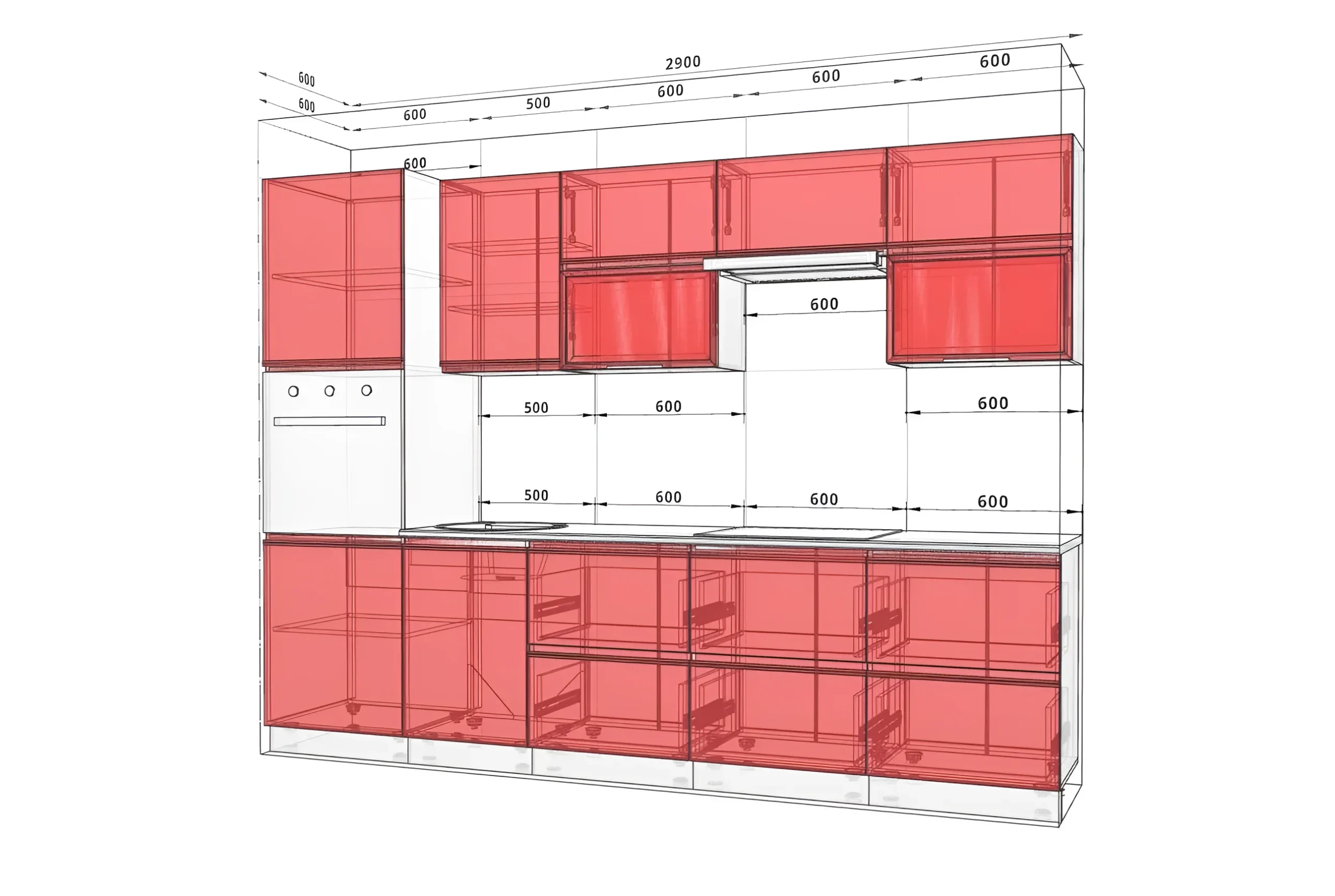 Габариты кухни «Тренд» 290 см тщательно продуманы для максимального удобства. Стандартная высота кухни составляет 2,15 м, что обеспечивает комфортный доступ ко всем элементам. Длина в 2,9 метра позволяет разместить все необходимые бытовые приборы и рабочие зоны, сохраняя при этом свободное пространство. Глубина нижних тумб в 450 мм является оптимальной «стандартной» величиной, обеспечивающей достаточно места для хранения посуды и кухонной утвари, не перегружая при этом кухню. Столешница со стандартной глубиной 600 мм гарантирует удобную рабочую поверхность для приготовления пищи. Верхние шкафы предлагаются в двух вариантах высоты: 720 мм и 920 мм. Это дает возможность выбрать конфигурацию, наилучшим образом соответствующую высоте потолков в вашем помещении и индивидуальным предпочтениям по хранению, создавая визуальную гармонию и дополнительное место для вещей. Эргономика каждого модуля продумана до мелочей для повседневного комфорта.