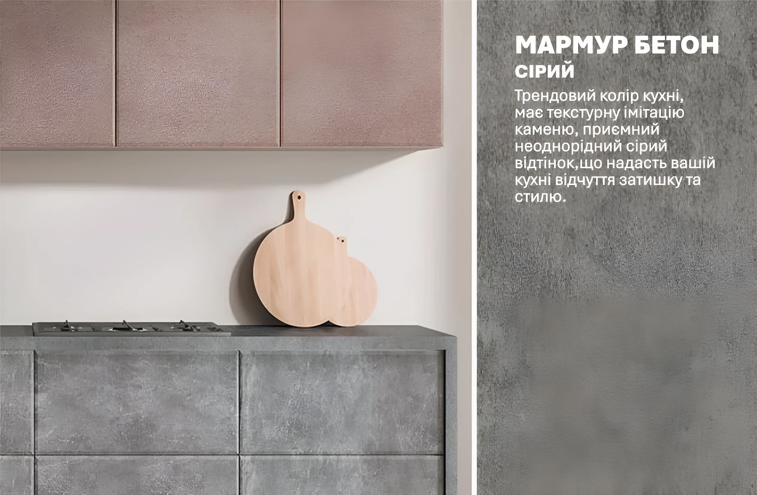 | Цвет фасада кухни | Мрамор бетон бежевый, Мрамор бетон серый |