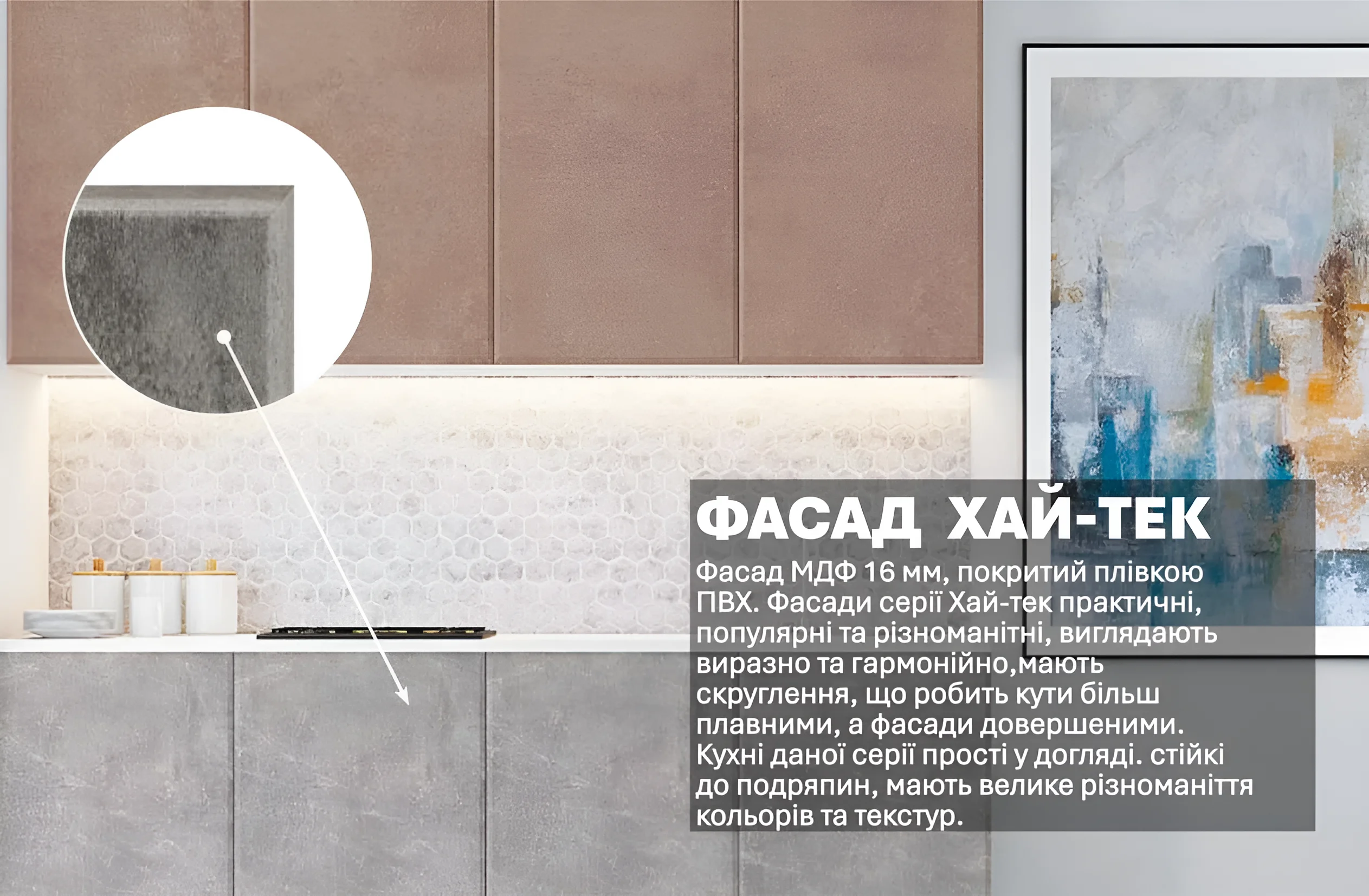 Купить Кухня «Хай-тек» 2м Мрамор бетон бежевый, Мрамор бетон серый в Украине вы можете на сайте MebelTops.com.