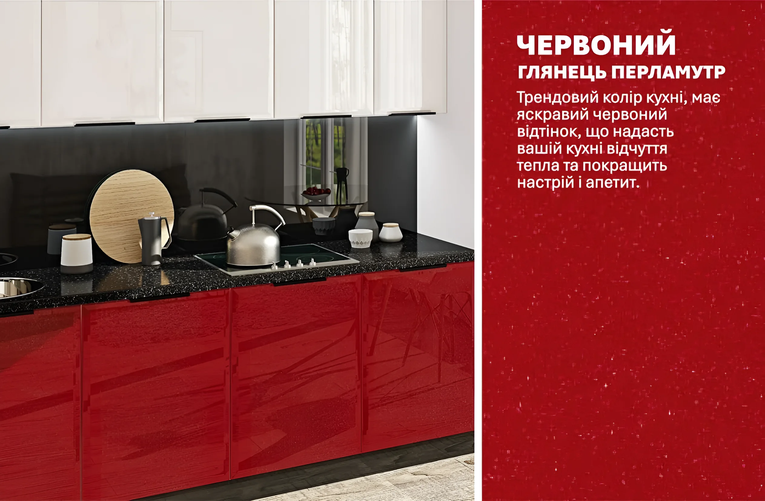 Кухня «Хай-тек» – это воплощение современного подхода к кухонной мебели. Её дизайн, основанный на принципах минимализма и функциональности, идеально вписывается в концепцию современного жилища. Сочетание белого и красного цветов фасадов создаёт яркий, но при этом сбалансированный акцент в интерьере. Белый цвет придает лёгкость и визуально расширяет пространство, в то время как красный добавляет энергии и страсти, делая кухню по-настоящему запоминающейся. Глянцевое покрытие фасадов не только выглядит эффектно, но и отражает свет, делая помещение более светлым и просторным. Этот кухонный гарнитур относится к серии «Хай-тек глянець», что гарантирует соответствие последним тенденциям в дизайне интерьеров.