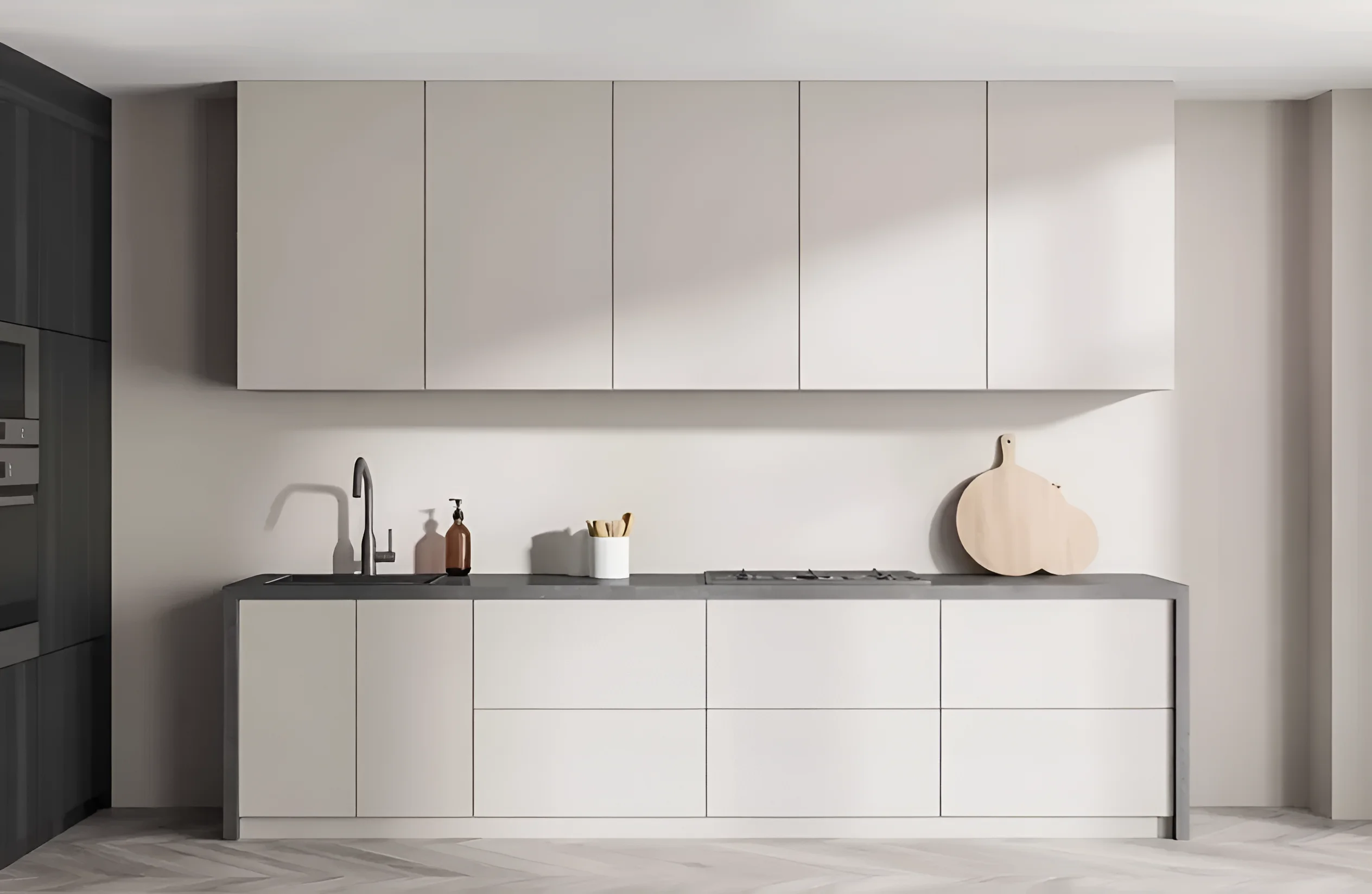 Верхние шкафы представлены в двух вариантах высоты: 720 мм и 920 мм. Это дает возможность выбрать конфигурацию, максимально соответствующую вашим потребностям в хранении и визуальным предпочтениям. Высокие шкафы на 920 мм идеально подходят для хранения редко используемой посуды или бытовой техники, а также для создания единой линии с высокими колоннами для встраиваемой техники.