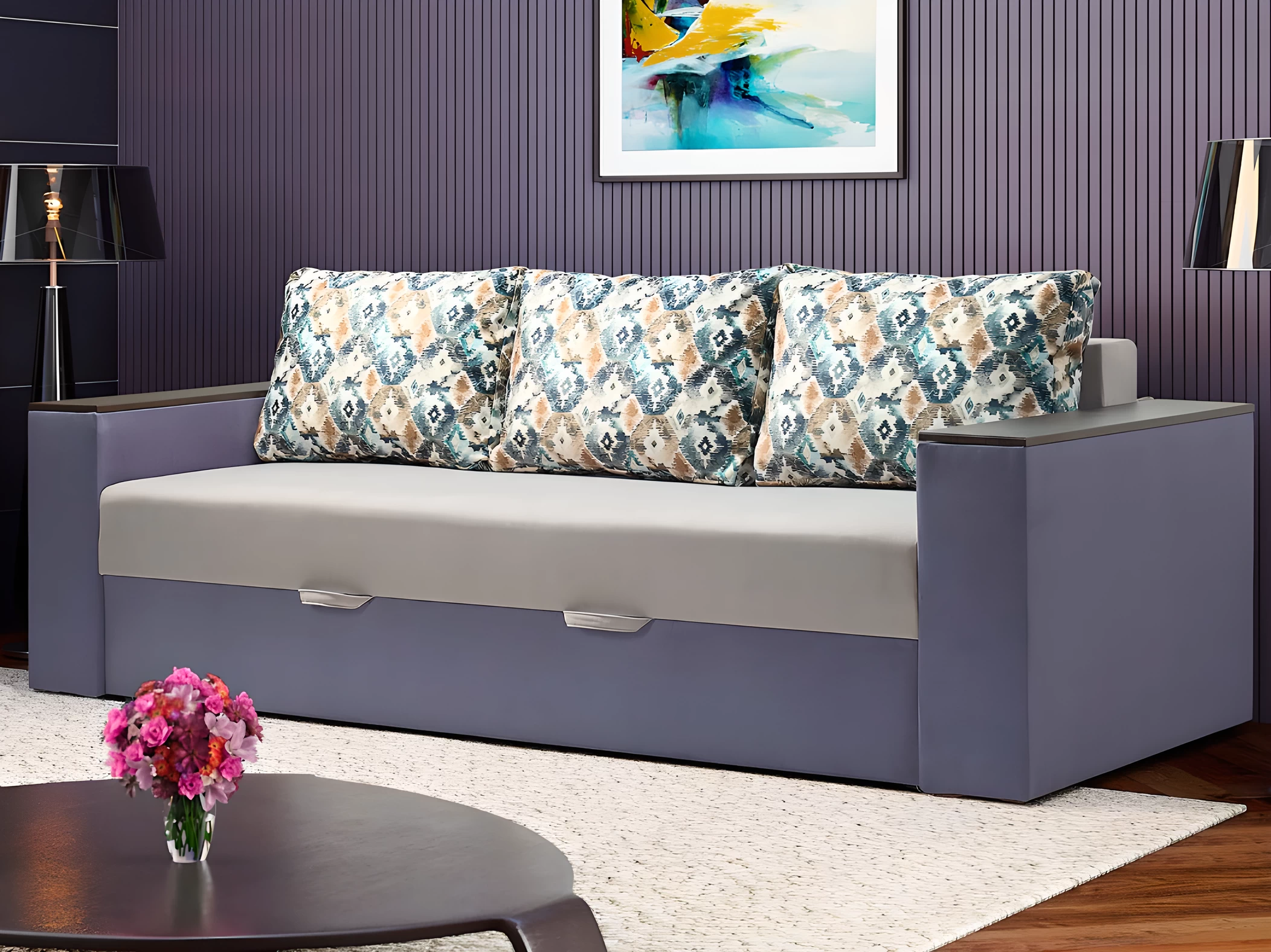Модель оборудована надёжным механизмом трансформации типа “еврософа”, который позволяет быстро и без усилий разложить диван в полноценное спальное место размером 1950 х 1450 мм. Внутри корпуса предусмотрена вместительная ниша для белья — практичное решение для хранения постельных принадлежностей.