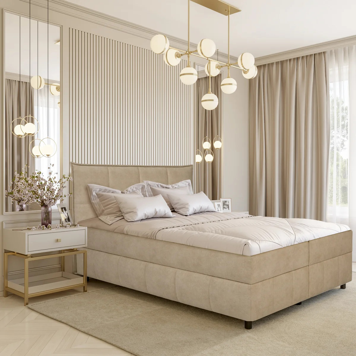 Дизайн спальной системы ERICA 180X200 приковывает взгляд своей элегантностью и лаконичностью. Изготовленная в сдержанных, но благородных бежевых тонах, она идеально впишется в самые разнообразные интерьерные решения – от классики до модерна. Мягкая, тактильно приятная обивка добавляет ощущение тепла и роскоши, приглашая окунуться в мир безмятежного отдыха. Высокое изголовье с деликатной стежкой не только служит стильным акцентом, но и обеспечивает комфортную опору для чтения или просмотра фильмов перед сном. Его вертикальные линии визуально вытягивают пространство, придавая спальне больше воздушности и света.
