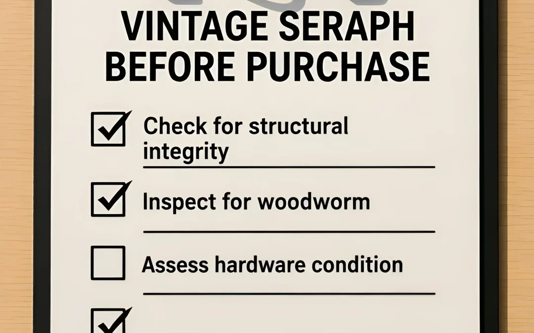 Изображение представляет собой стилизованный чек-лист, выполненный в минималистичном дизайне. Использование белого фона и черного текста на фоне, напоминающем доску для записей, создает ощущение практичности и информативности. Четкие линии и контрастные цвета привлекают внимание к ключевым пунктам проверки. Общий стиль изображения соответствует эстетике ретро и винтажа, что гармонично сочетается с темой статьи.