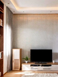 Тренды дизайна гостиной 2025 Minimalist Japandi-style living room with low seating, neutral color scheme, natural wood, and simple, elegant decor, photoreali mebeltops.com 039