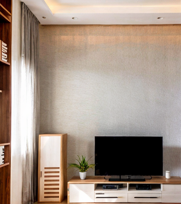 Тренды дизайна гостиной 2025 Minimalist Japandi-style living room with low seating, neutral color scheme, natural wood, and simple, elegant decor, photoreali mebeltops.com 039