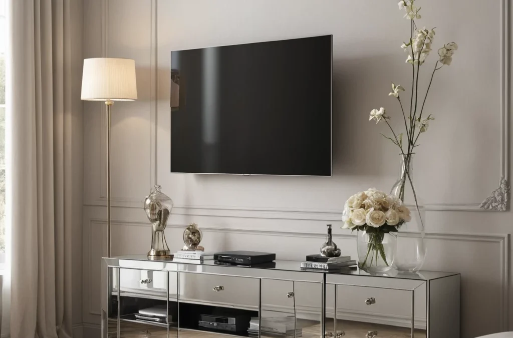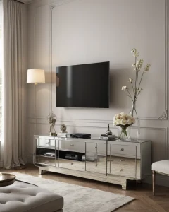 photorealistic, a mirrored TV stand, adding luxury and reflecting light, glamorous interior №17 — mebeltops.com