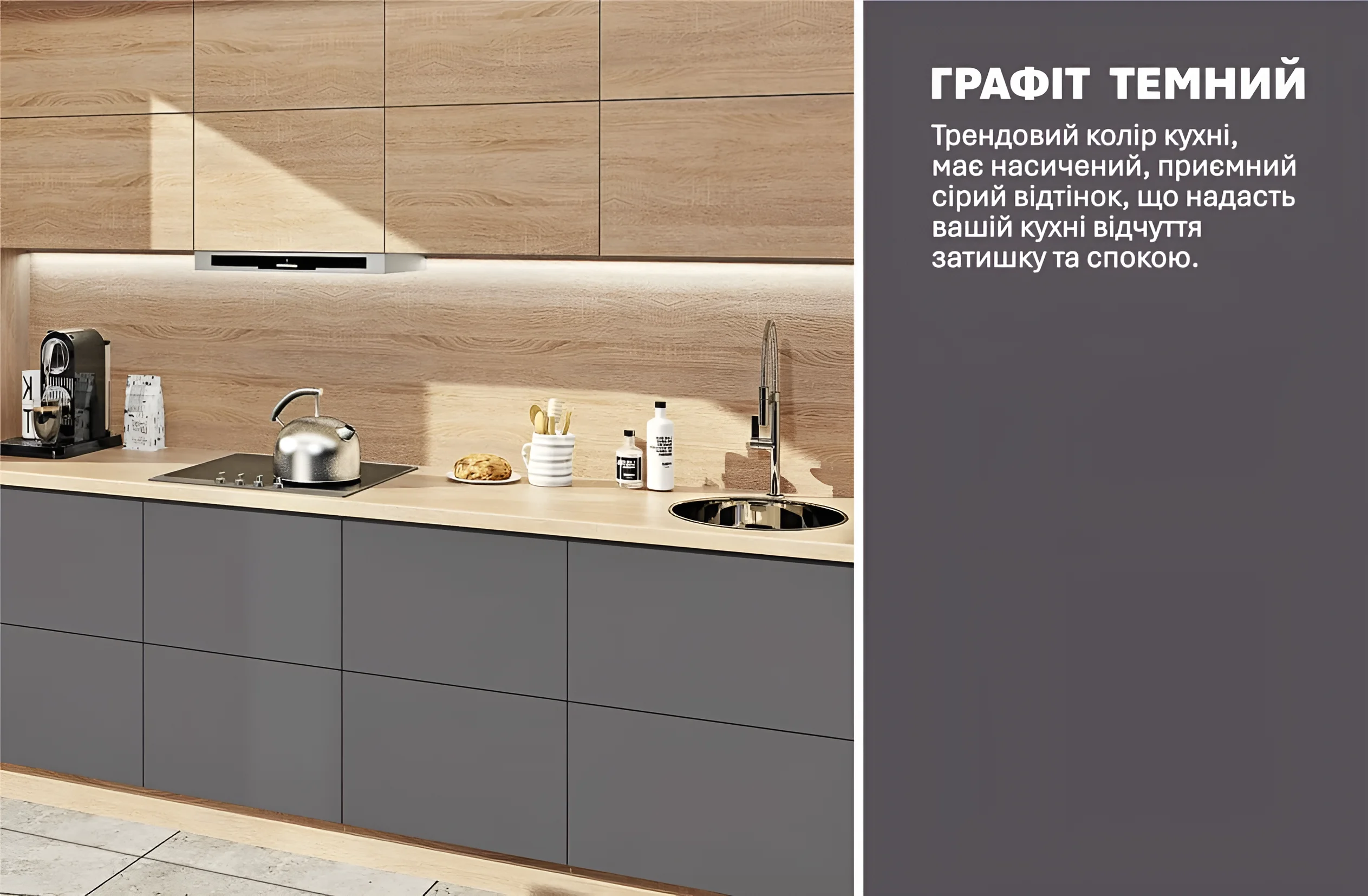 | Колір фасаду кухні | Графіт, Дуб натуральний |