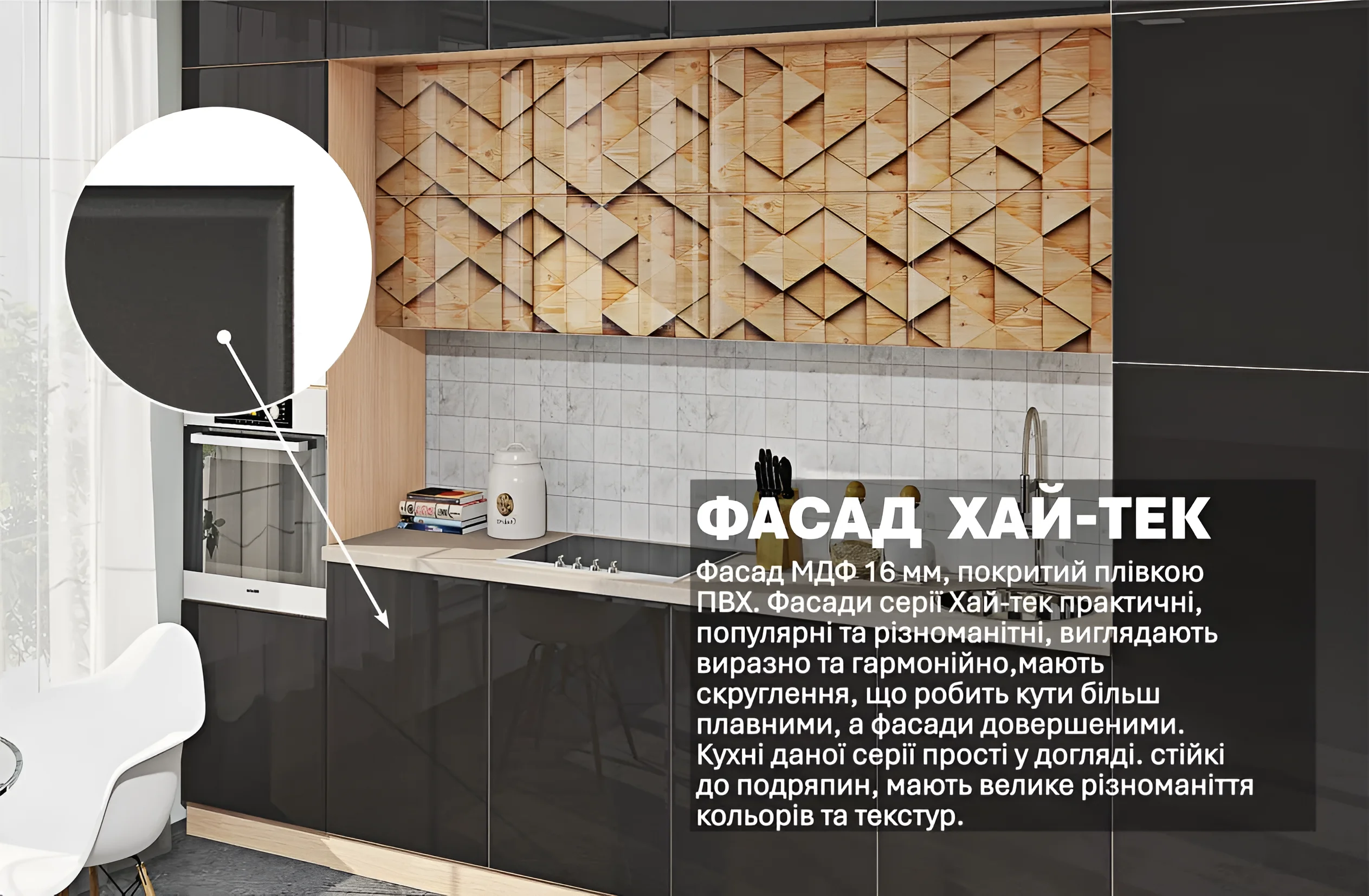 Вибираючи кухню “Хай-тек з кольоровим друком” на MebelTops.com, ви отримуєте не просто меблі, а комплексне рішення для створення ідеального кухонного простору. Ми пропонуємо конкурентні ціни, професійні консультації та оперативну доставку по всій Україні. Наша команда завжди готова допомогти вам з вибором та відповісти на всі запитання, щоб процес покупки був максимально комфортним та приємним. Сучасний дизайн, бездоганна якість матеріалів, продумана функціональність та гнучкі умови замовлення роблять цю кухню ідеальним вибором для тих, хто цінує стиль, комфорт та довговічність. Створіть кухню своєї мрії з MebelTops.com!