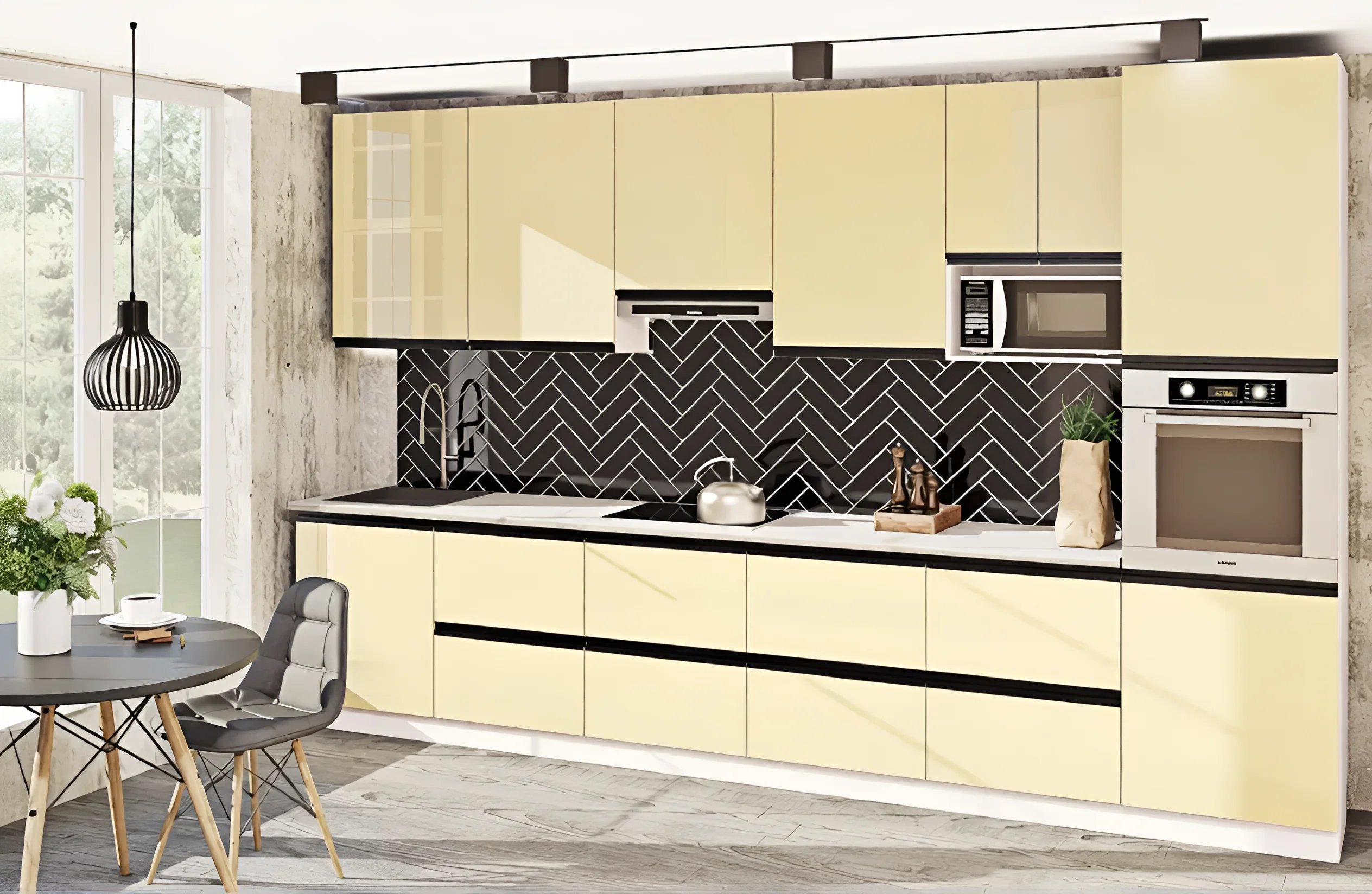 Кухонний гарнітур “Sigma ручка” створений, щоб захоплювати. Його дизайн у серії “Sigma ручка” відрізняється лаконічними лініями та продуманими деталями. Фасади, виконані з високоякісного МДФ, пропонують два варіанти покриття: сяюча плівка ПВХ глянець для любителів сучасного блиску та розкішна плівка ПВХ софт тач для поціновувачів оксамитової матової поверхні, приємної на дотик. Ці варіанти не тільки надають кухні вишуканого вигляду, але й забезпечують додатковий захист від вологи та механічних пошкоджень. Чистий Білий колір привнесе у вашу кухню відчуття свіжості та простору, а ніжний Крем створить теплу та гостинну атмосферу. Вибір цих кольорів – це інвестиція в timeless дизайн, який буде актуальний протягом багатьох років.