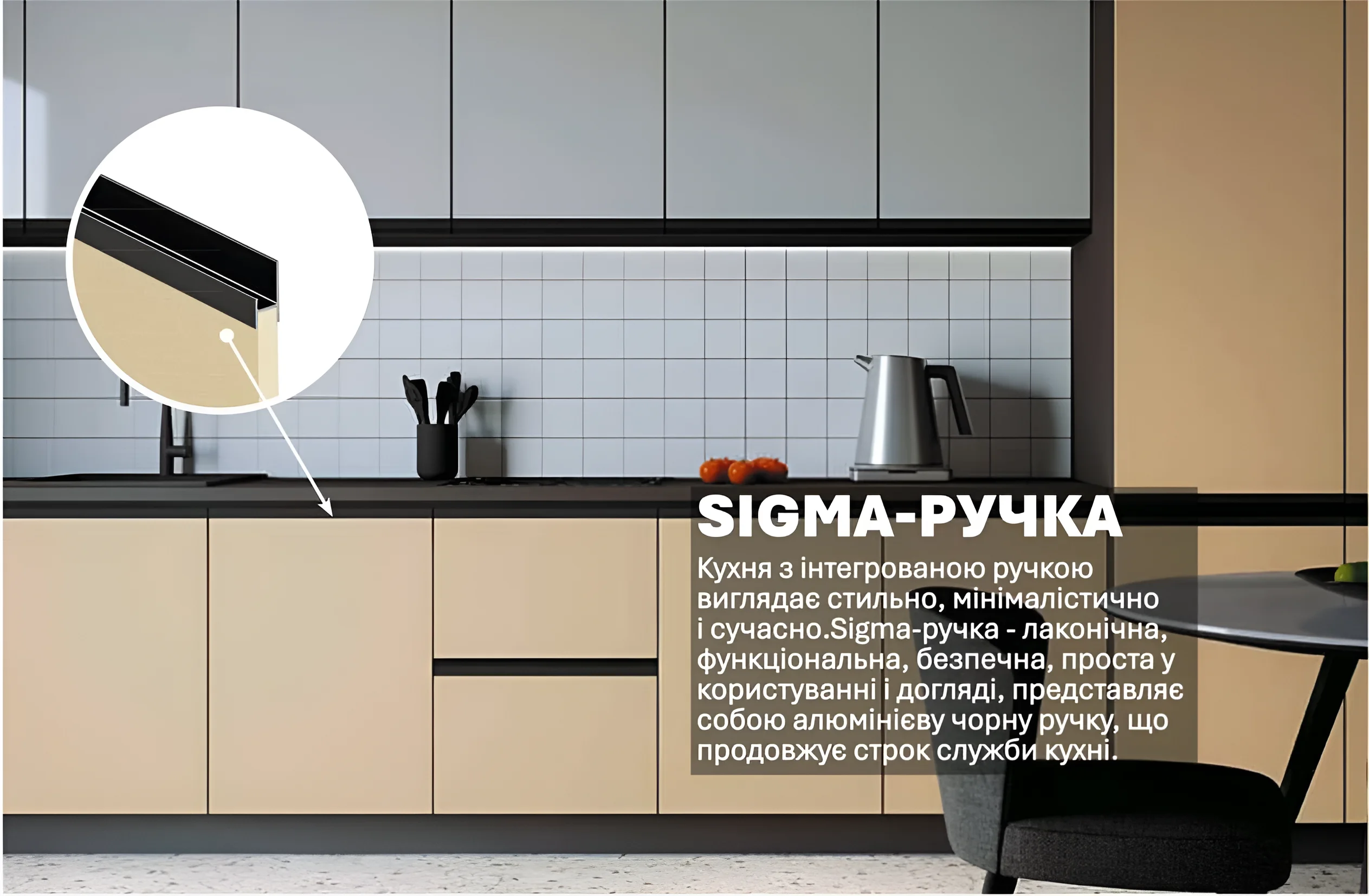 Купити Кухонний гарнітур “Sigma ручка” 5,4 метра Білий, Крем в Україні ви можете на сайті MebelTops.com.
