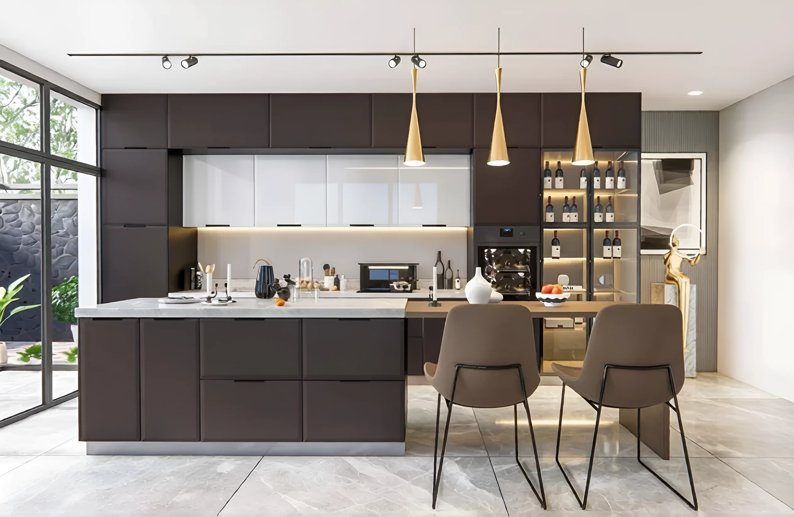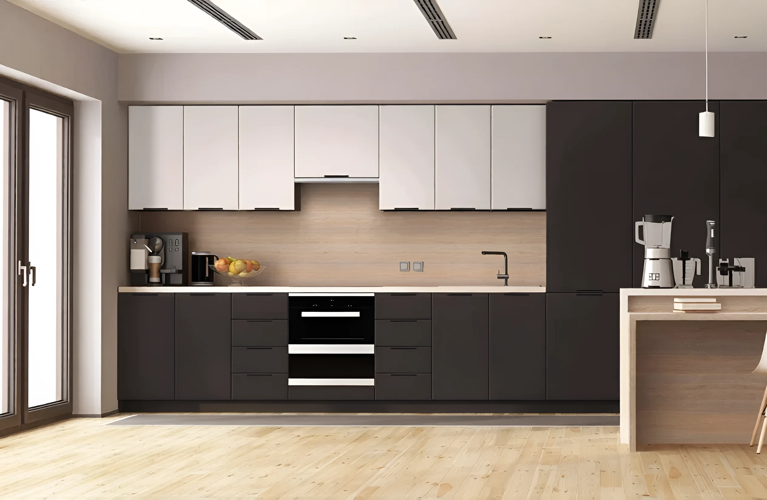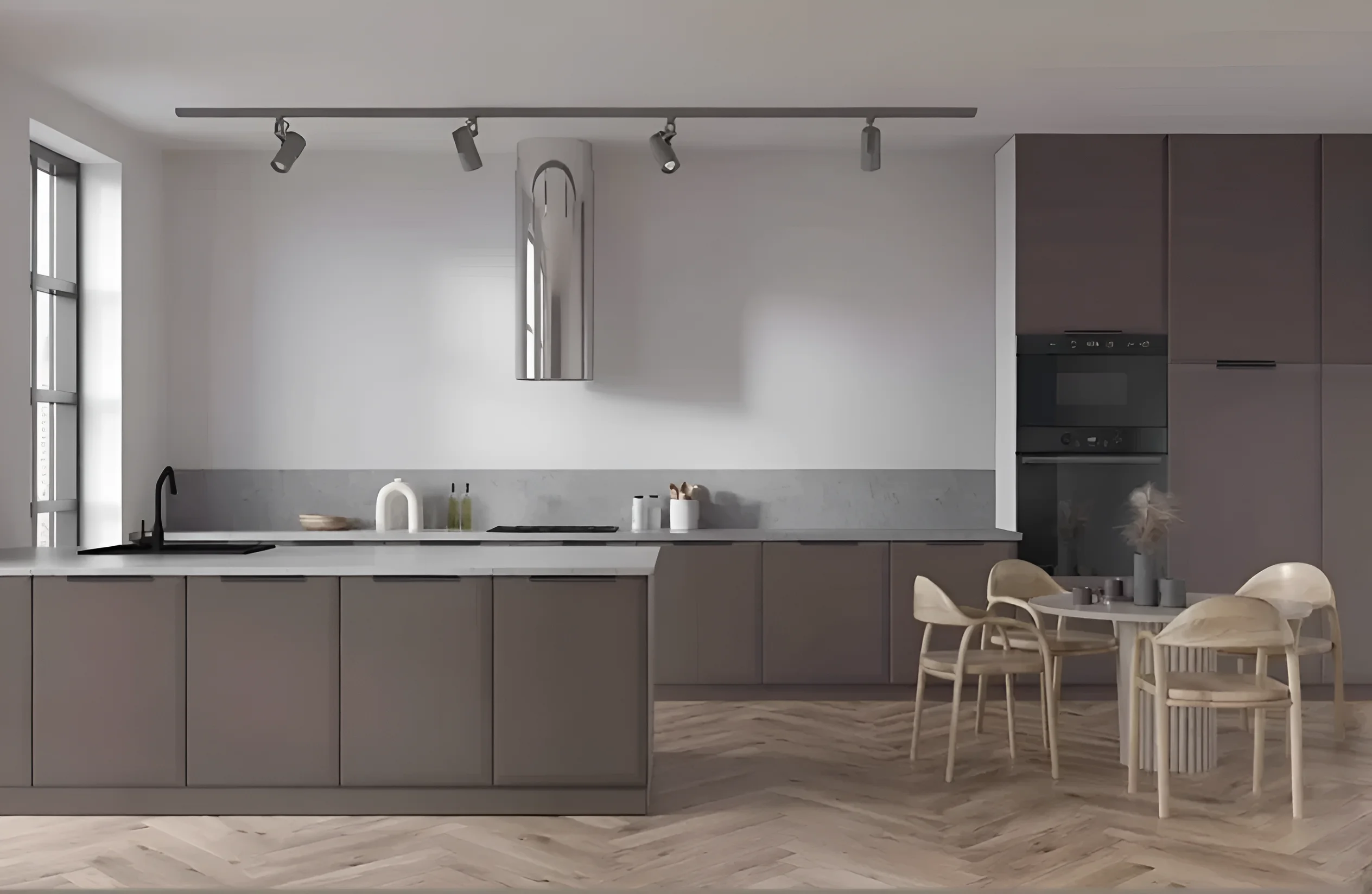 Дизайн кухні “Хай-тек” – це втілення сучасного стилю, який характеризується чистими лініями, відсутністю зайвих деталей та акцентом на практичність. Колірне рішення “Смокі” надає кухні особливої глибини та універсальності, дозволяючи їй гармонійно вписатися як у світлі, так і в більш контрастні інтер’єри. Фасади виконані з високоякісного МДФ та покриті плівкою ПВХ з ефектом софт тач, що не тільки надає поверхні приємної на дотик оксамитовості, але й забезпечує високу зносостійкість та легкість у догляді. Матова текстура софт тач мінімізує видимість відбитків пальців та дрібних забруднень, зберігаючи первозданний вигляд вашої кухні на довгі роки. Відсутність виступаючих ручок або їх інтеграція в дизайн підкреслює загальну концепцію мінімалізму та сучасності. Серія “Хай-тек софт тач супермат” розроблена для тих, хто шукає ідеальне поєднання естетики та практичності у своїй кухні.